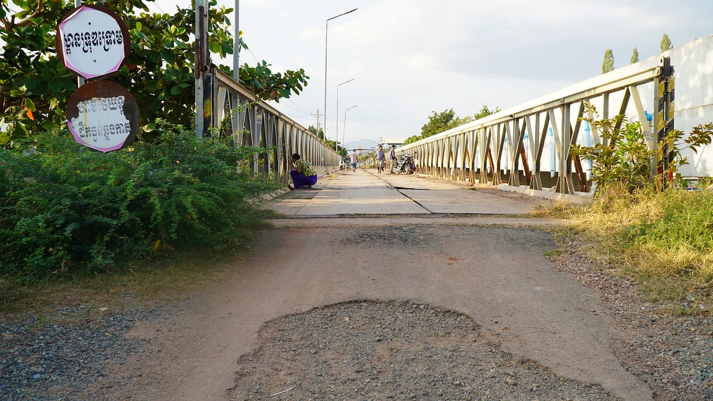 We had come from Siem Reap. Tuk-tuks. Dusty roads. The slowest traffic in the world. The most beautiful people we have ever met. When you smile at them, they smile before you finish. They join their hands. I join mine.